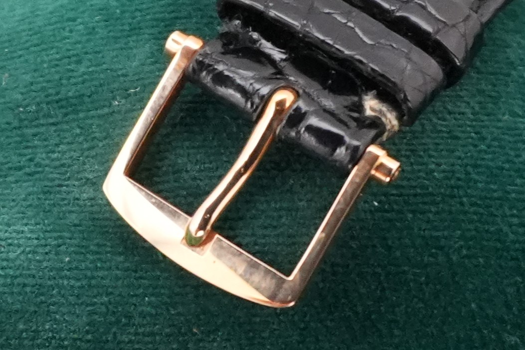 革ベルトは純正のシャイニー・クロコダイルで、純正の尾錠が付属します。さらに専用BOXとギャランティー一式も揃っています。