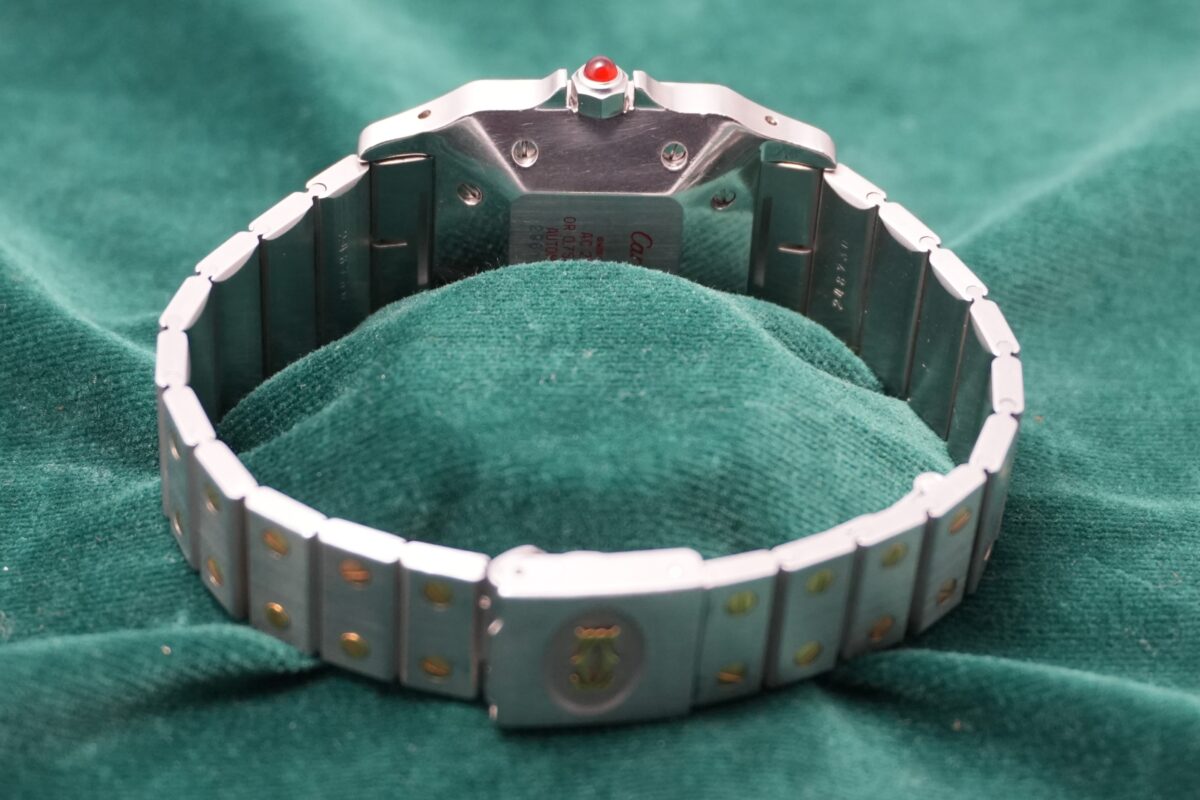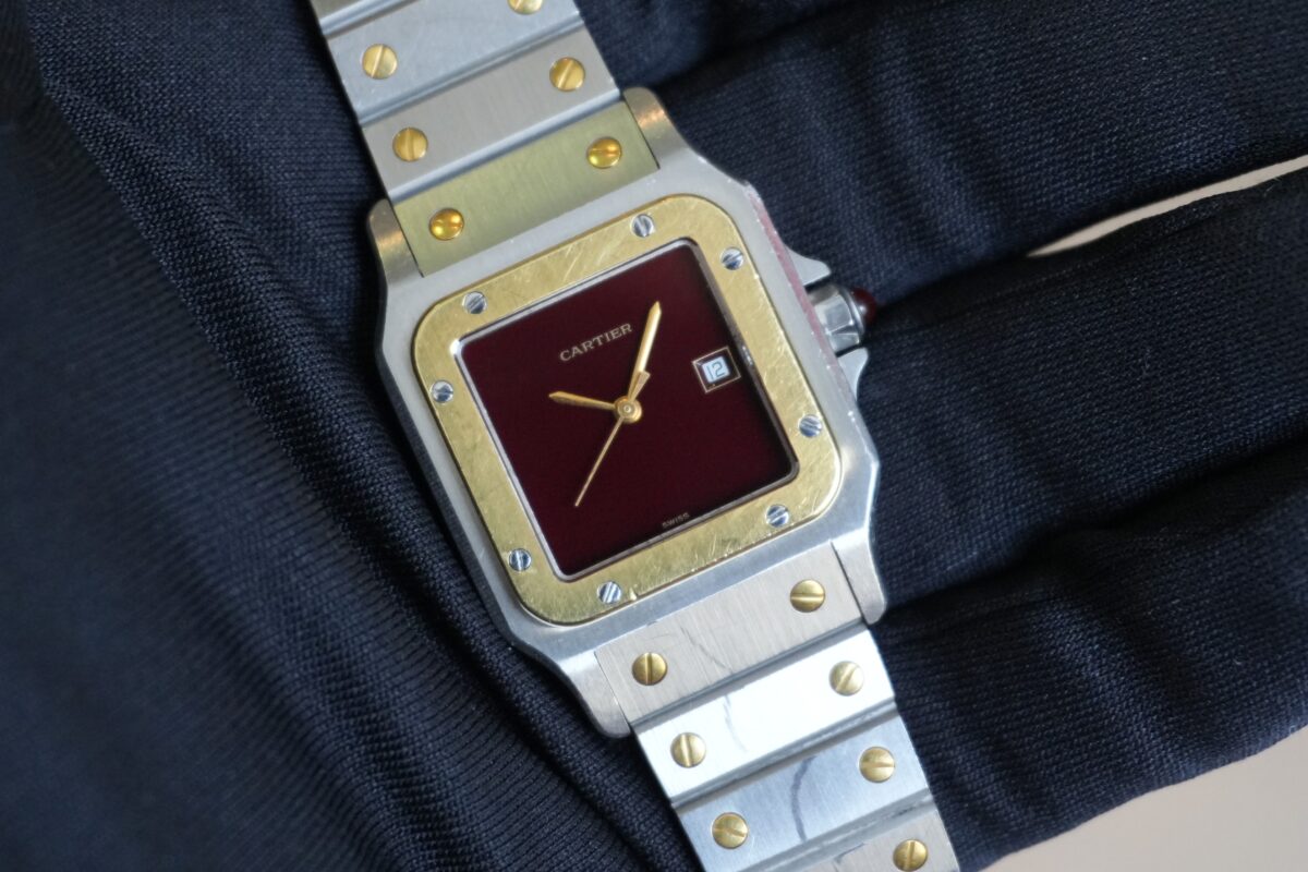 全体的に整ったコンディションの人気のカルティエでサントスのコンビの珍しいガーネットダイアルですので、お探しの方にお勧めします。