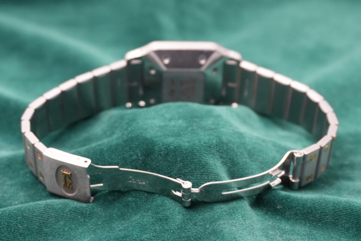 ケースは全体に傷はあるものの、その分磨きを感じないオリジナルのシェイプをしっかりと残したコンディションで、ブレスレットはラブブレスと呼ばれる初期型のカルティエロゴ入リシングルバックルで伸びの少ない良いコンディションです。