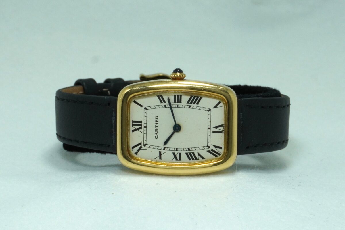 角の無い丸みを持たせた金無垢ラージタイプのトノーケースは、大きめの時計が好きな女性の方には特にお勧めです。
