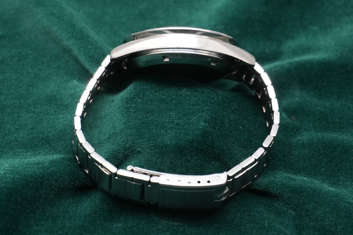 ケースには若干の研磨が見られるものの、オリジナルのシェイプをしっかりと保っており、裏蓋のシーホースのエングレービングも深く残った良好なコンディションです。