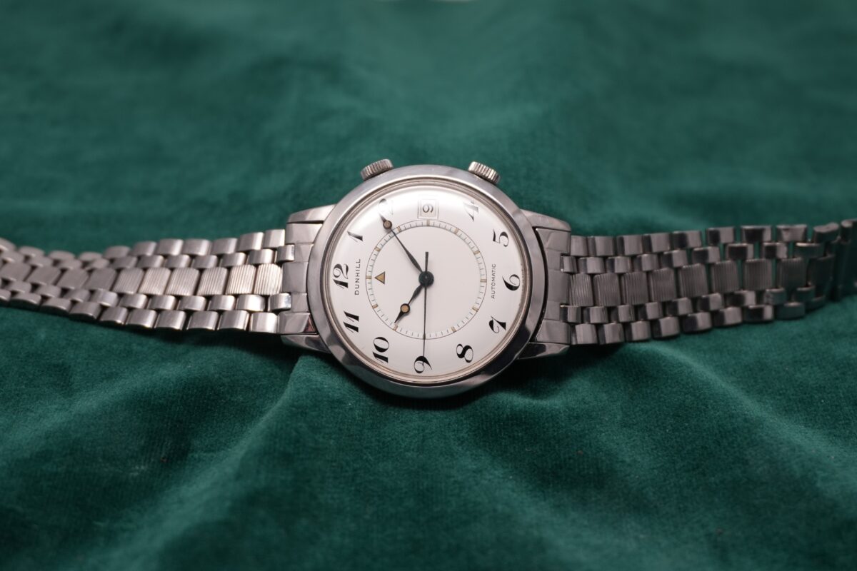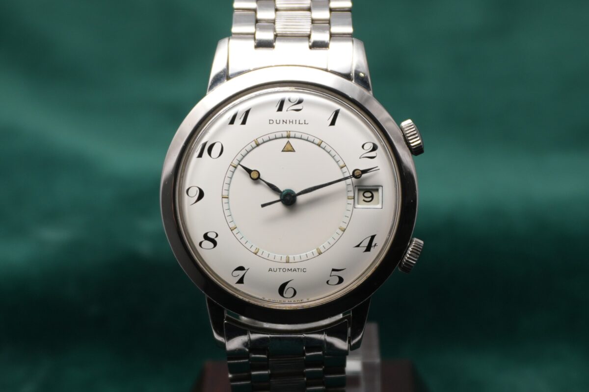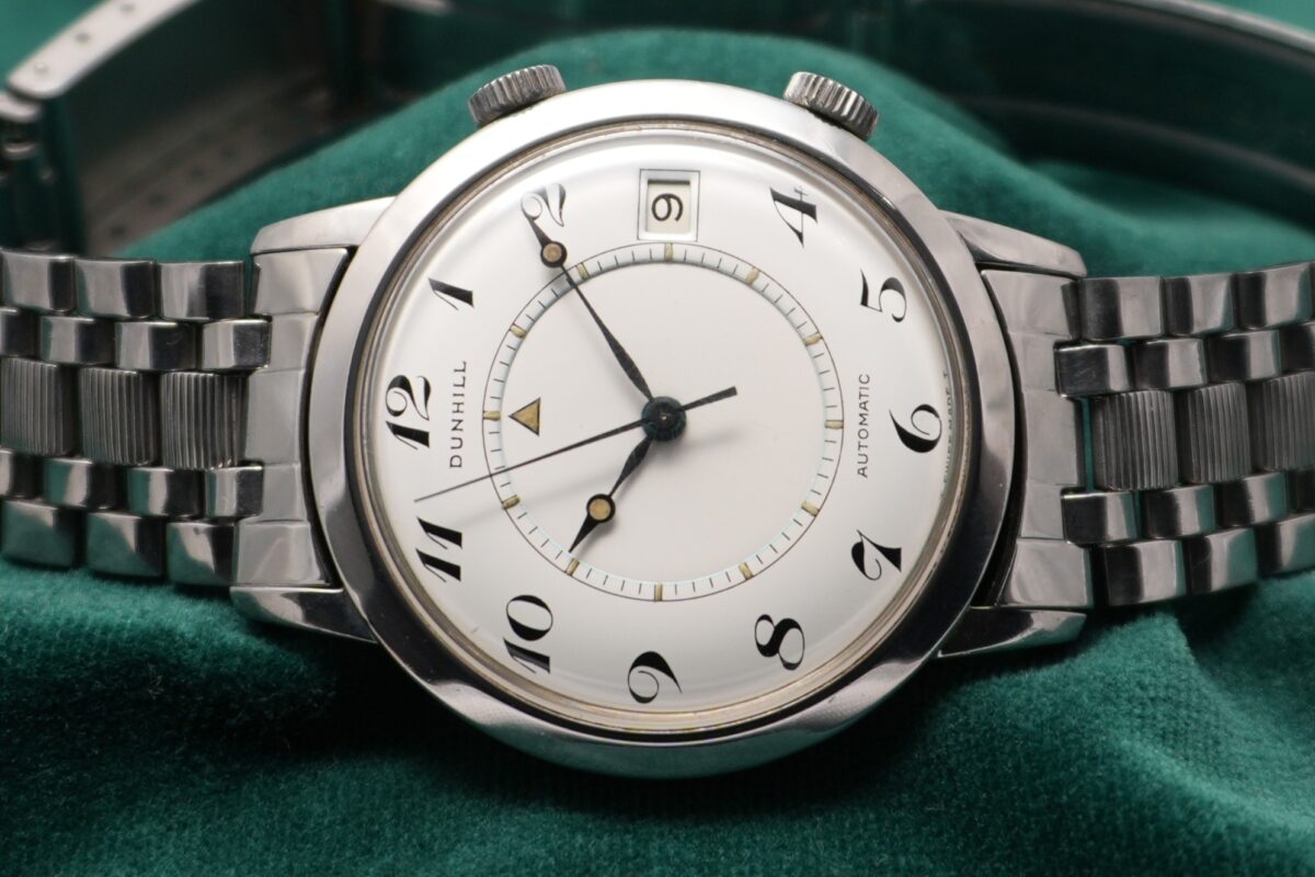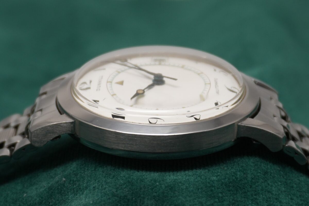 ダンヒルネームのメモボックスは、ジャガールクルトネームのモデルと比較してダイヤルデザインに独自の洗練があり、ドレスウォッチとしても非常に魅力的です。純正ブレスレット付の個体は滅多に出回らないため、ぜひこの機会にご検討ください。