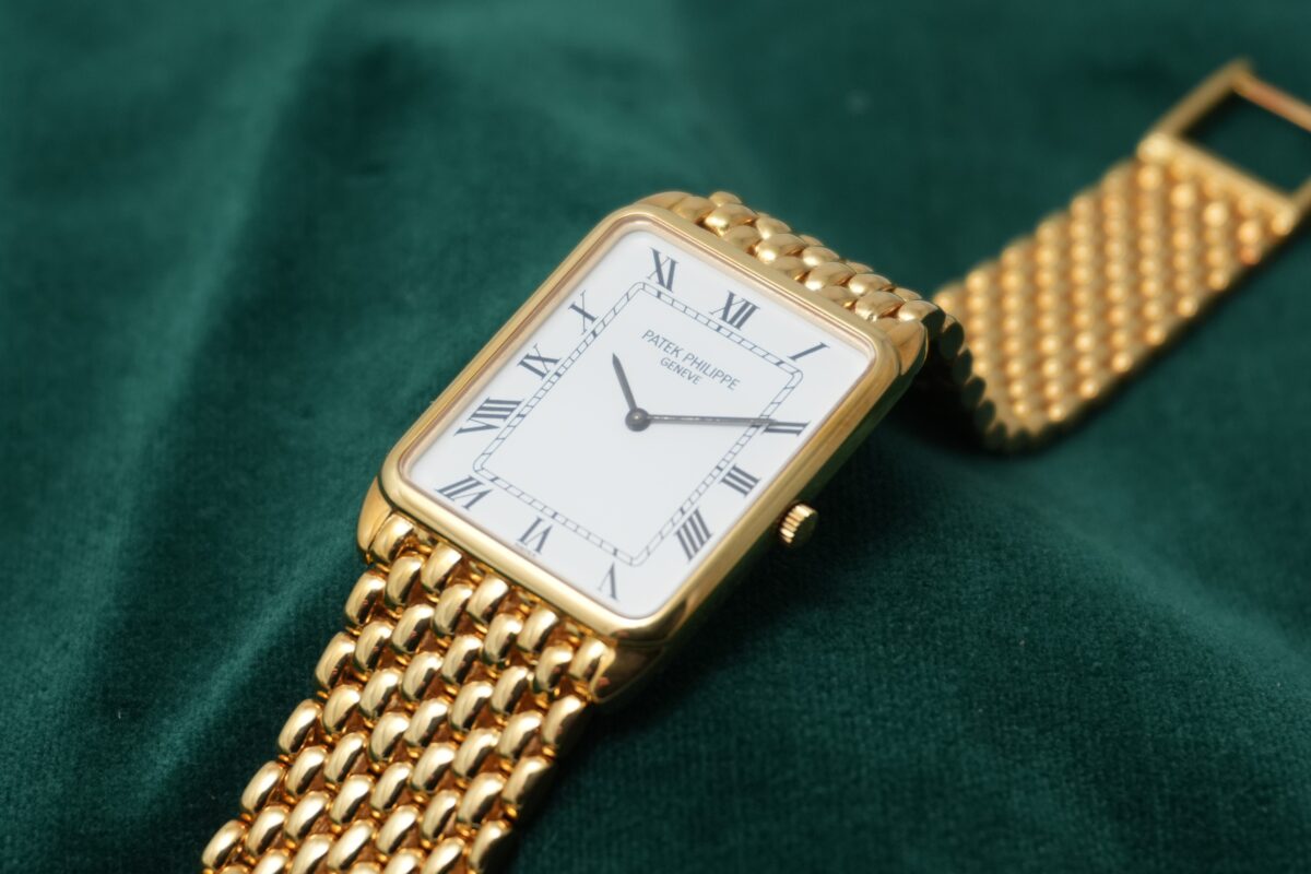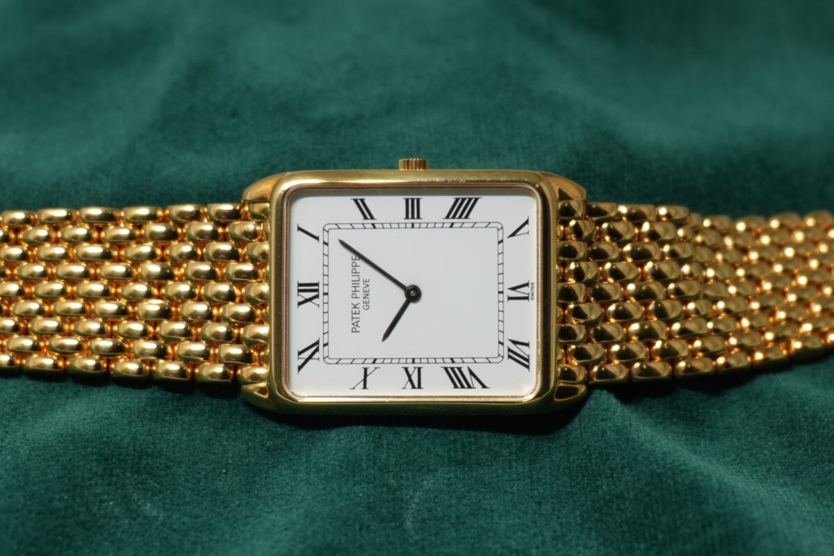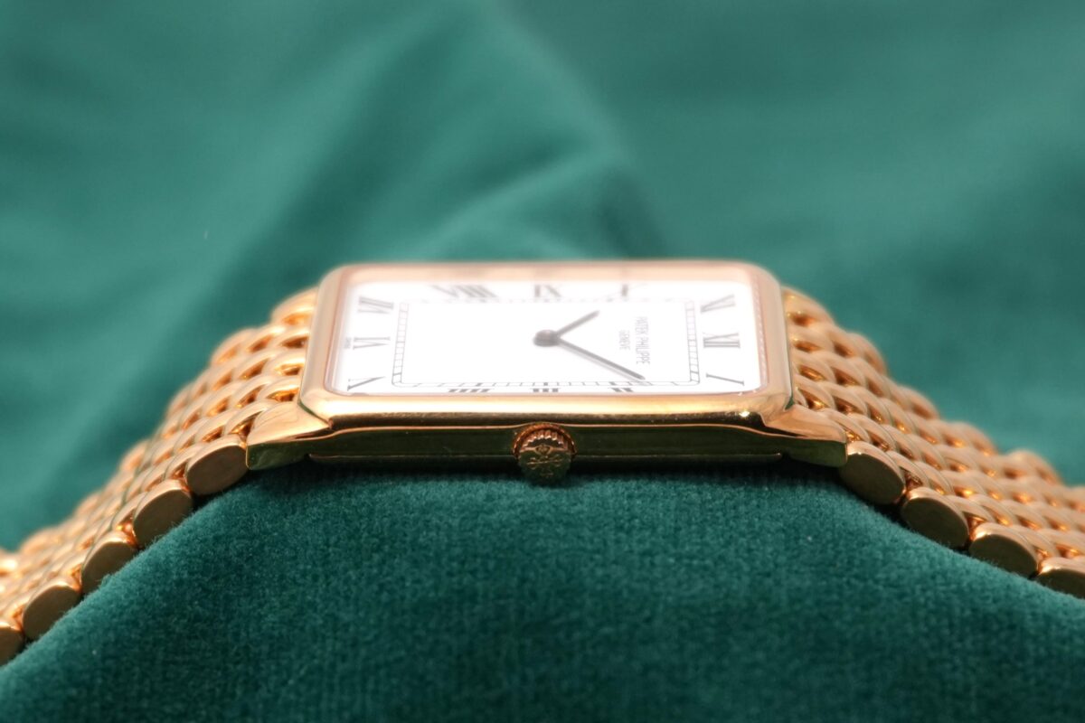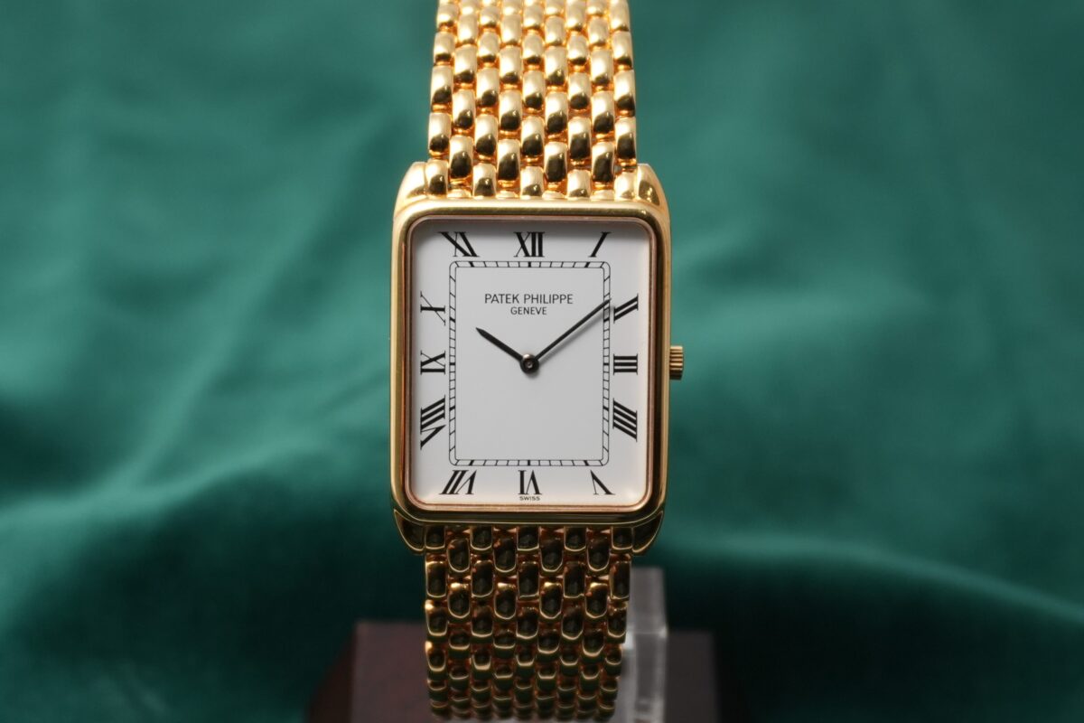 パテック フィリップの角型・薄型ドレスウォッチで、一体型ブレスのモデルがここまで完成された雰囲気で揃うことは多くありません。この機会にぜひお勧めいたします。